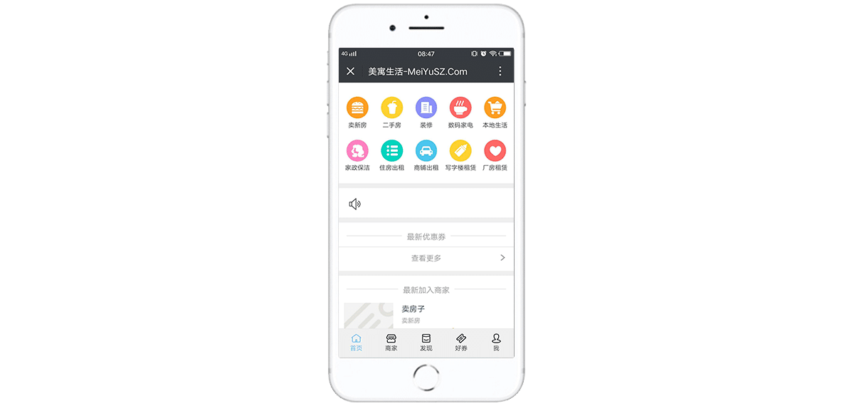 美寓生活是一個(gè)同城優(yōu)惠券發(fā)布平臺(tái),商家可以發(fā)布折扣券、代金券、禮品券、團(tuán)購(gòu)券、紅包券等通用優(yōu)惠券,會(huì)員可以在線領(lǐng)取商家優(yōu)惠券。